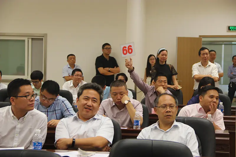 九月初的土拍盛况依然历历在目,时隔半月市行政服务中心再度举行福州第十次土地拍卖会,较之此前的19家房企齐聚一堂,今日仅8家房企到场,会场略显清冷。开拍伊始拍卖官戏称是否上次拍卖会上本土房企表现太过生猛吓跑其余。首先开始拍卖是2015—28号,该地块位于晋安区连江中路西侧,晋连路南侧,属原连潘a-01地块。在第八次土地拍卖会上,首幅入市的连潘旧改地块由集团有限公司以8.6亿元拿下,创125%溢价,至此连潘旧改地块热潮便席卷榕城!果不其然,巨成、阳光城、金辉、融侨、首开......等房企纷纷举牌竞价,但较之前次的疯狂加价幅度,本次竞拍各房企更显冷静泰诺,加价速度有条不絮,却又都锲而不舍。几十轮竞价下来,后以首开6.4亿元竞价落锤,15524元/㎡,48.8%。