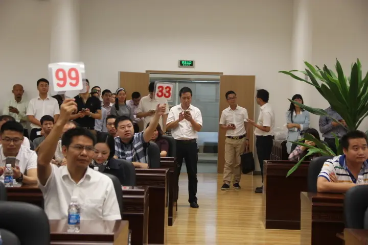 今日上午9时,参与竞拍的陆续到场签到:世茂、福晟&建发、阳光城、中海、正荣、中鼎(保利&首开&中庚)、华润、......而此前以19224元/㎡拿下光明港地块的融侨却姗姗来迟,终于在竞拍开始前五赶达现场。一如既往的拍卖官开场词后开始介绍首先开拍的2015—29号,播放地块现状视频。该地块拍卖起始价为22.99亿元,33号竞拍人首次举牌直接加价6亿元,可谓豪气万丈!原来33号竞拍人是福晟&建发,不同于以往的各房企独树一帜,单枪匹马上战场,本次竞拍人行列里首企联袂拿地组合。除却33号是福晟携手建发联合组外,99号福州中鼎投资开发有限公司也是个开发商组合,保利、首开、中庚三强联盟。许是首次加价幅度过猛,且起始价本身就不低,接下来的举牌加价都略显审慎,各家房企都系深思熟虑一番才举起手中的红牌子。融侨、阳光城、中鼎......陆续加入竞拍行列,其中数33号福晟&建发与99号中鼎角逐尤其激烈,两方夺取加洋巷地块的决心似乎不相上下,几番2千万举牌加价下来,终还是中鼎(保利&首开&中庚)略胜一筹以33.4亿元成功摘得宗地2015—29号,楼面价22584元/㎡,为45%。