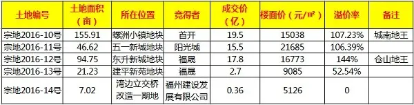 2016-11号五一新城地块第2幅出让。该地块的争夺要远远大于块,前后共计超100轮举牌喊价,终阳光城以15.5亿元成功拿下,106.39%,21685元/㎡,位列福州土地楼面价第三的位置,仅次于中庚的台江区金融商务区b地块、保利首开中庚联合拿下的加洋巷地块。